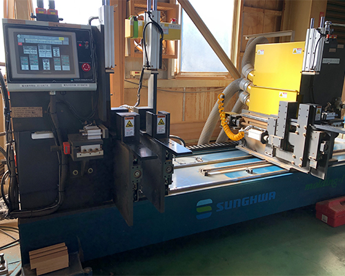 片側ずつの面倒な枘加工を専用機で "ワンショット" 一発解消できます。